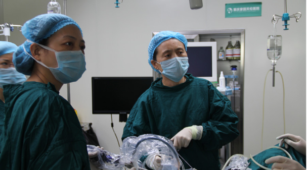 李斌教授為患者進(jìn)行腔鏡手術(shù)